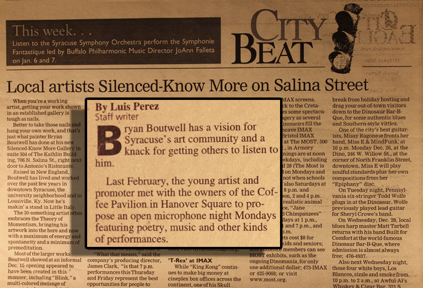 The New Times News Paper, Syracuse NY- Featured Article on Artist and Performer Bryan Matthew Boutwell, and the diversity and success around his Poetry Slam and Performance Art Venues in Syracuse NY.